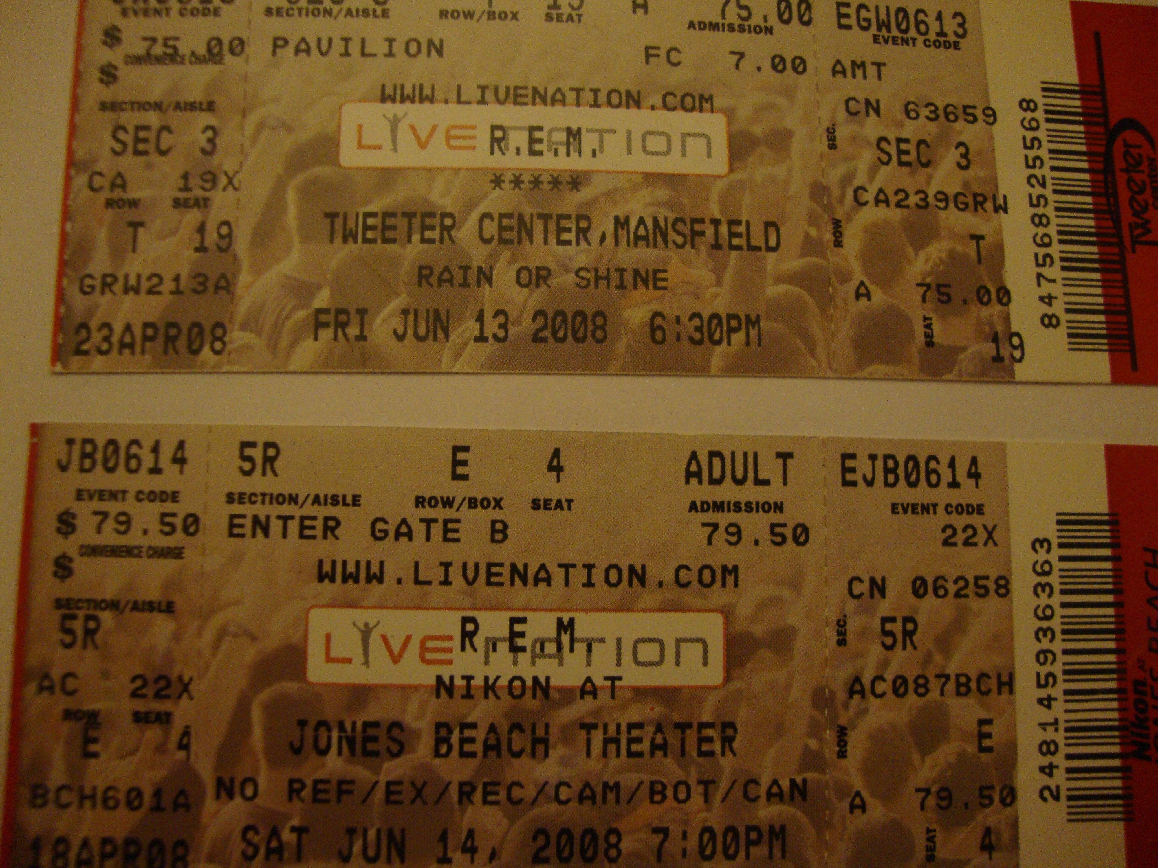 I wish I could remember my first one. It was sometime during the Monster tour in ’95. The one in Buffalo? I must have a special R.E.M. section in a photo album, because the first R.E.M. ticket stub I have in my ticket stub book is from 1999. I haven’t unpacked my photo albums since I moved two years ago. Now might be the time.
