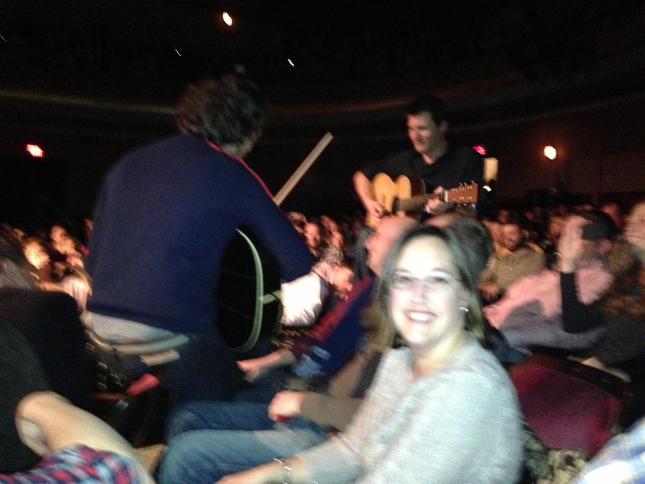 Last night, some friends and I saw Guster perform at the Portsmouth Music Hall. It was my first time at that venue, so on the birthday list it goes. It is a great venue. It’s recently been renovated so looks beautiful. The acoustics are good…and the size is intimate. Things got even more intimate when half of Guster serenaded the audience member two seats away from me.