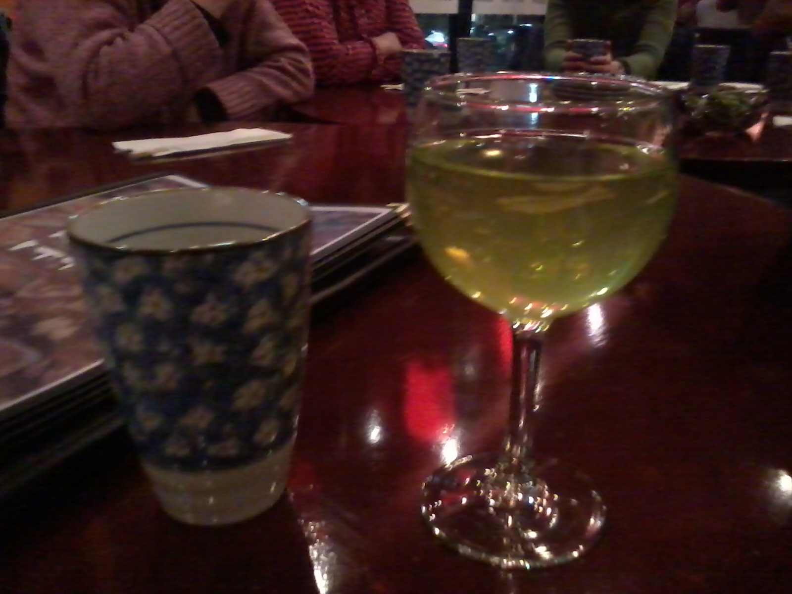 So #2 on the birthday list is a sake cocktail. My friend Linda had her birthday dinner at a Japanese restaurant last night. I wasn’t brave enough to try quail egg or beef tongue, but I’ll try any alcoholic concoction once! I’ve only ever drunk warm sake, so it was interesting to drink cold sake…with a green apple flavor. It was quite tasty. And s.t.r.o.n.g.