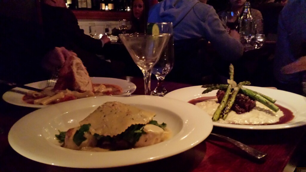 I indulged in my bi-/tri-annual three-course meal a few nights ago. My friends and I had dinner at a subterranean Italian restaurant that was so tiny it was almost comical. I lost count of the number of times the waitstaff bumped into my girlfriend as they squeezed by our table.