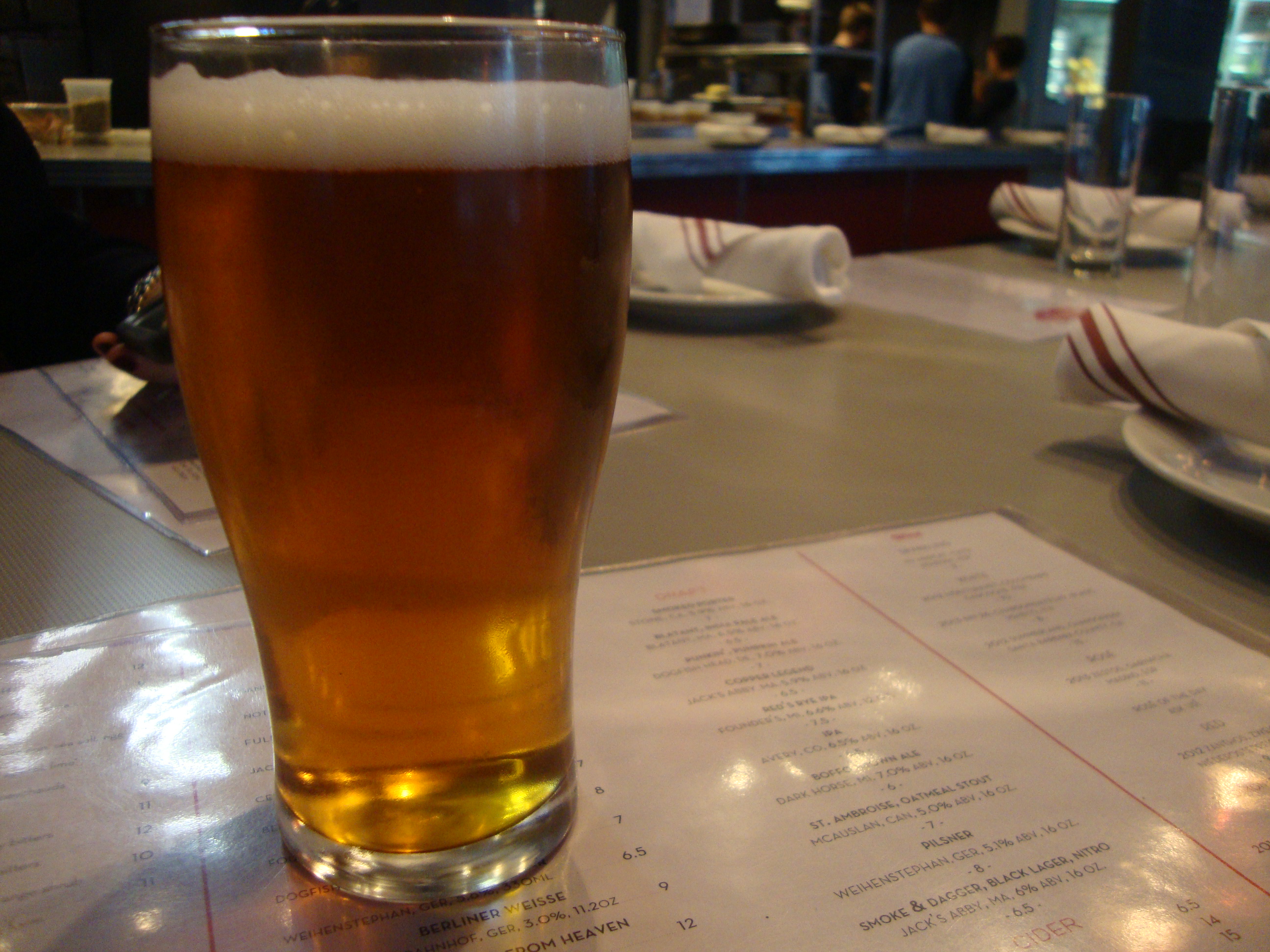 It made me feel nostalgic for my youth, because I recalled that going out with a sizable group of friends was the norm when I was in my 20s and early 30s. As the decade of my 30s has marched on, the majority of my friends have silently done an about-face, marching in the opposite direction to the ‘burbs and parent-land. And it’s even difficult to find a date that works for all of my single, kid-free friends. So suffice it to say that the stars aligned last week, and I sure hope they do again! We started out the night at Merrill and Co. I tried Jack’s Abby Copper Legend, a nice Oktoberfest beer.