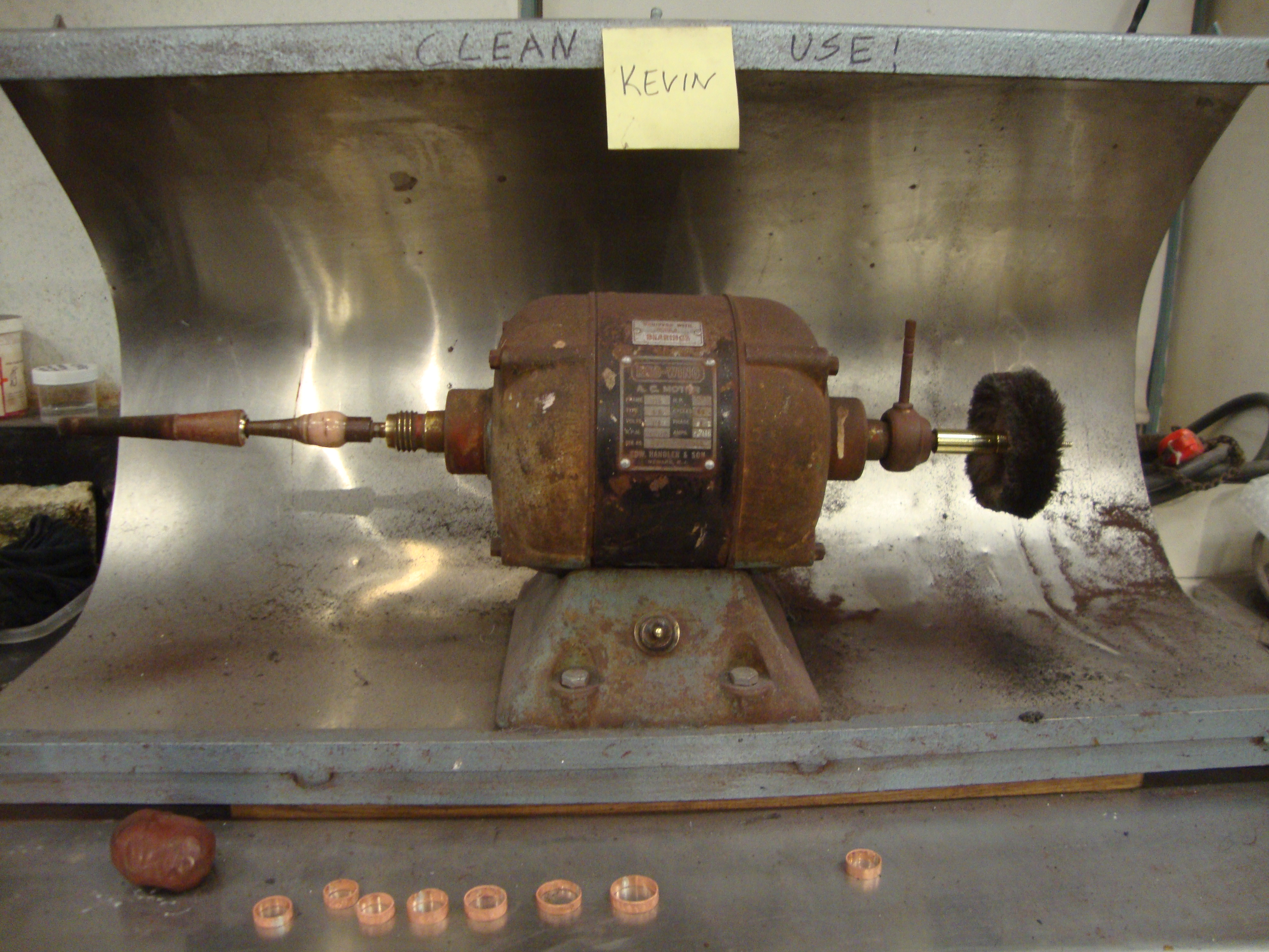 Sophia and her assistant, Eve, took care of the tricky parts: soldering the ends together and polishing. This is Kevin the polisher.
