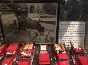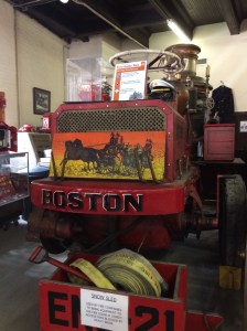 The museum is in one big room, which used to be an actual firehouse. When I arrived, there was a children’s birthday party going on, so I quietly strolled along and looked at a number of old fire engines, a display about the devastating Cocoanut Grove fire in 1942, and artifacts such as “clackers” used in colonial times to wake up sleeping families to alert them of a fire or other emergency.