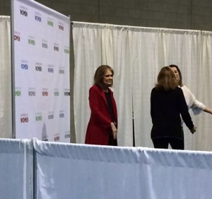 Gloria was a keynote speaker at the opening night of the Massachusetts Conference for Women. I hadn’t attended the conference before, so the opening night was a good overview of the event. The exhibit hall was impressive: areas for career resources, nonprofits, female business owners selling their products, and multiple authors available for book signings. There were other keynote speakers that evening as well, but my friend and I only tuned in for Gloria.