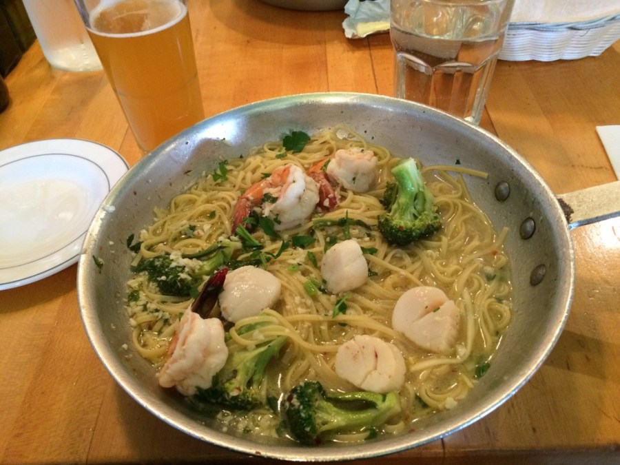 Someday came this spring! The Daily Catch is a small restaurant that always has a line outside at dinnertime. It has approximately 10 small tables. Allen and I arrived at 5:00 on a weekend night and got the last available table. The restaurant specializes in Italian seafood dishes. I had shrimp and linguine and he had shrimp and scallops and linguine. There is a reason for that line outside. The food is heavenly. I want to return and try the black pasta made with squid ink…