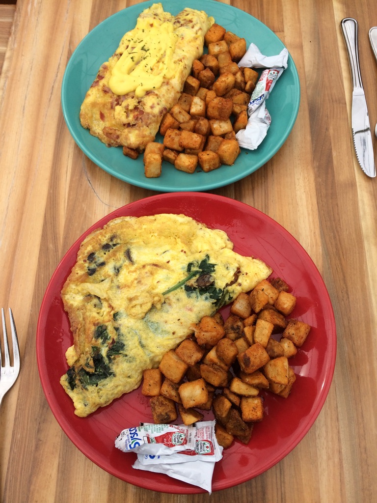 We had never eaten at the restaurant before, so we didn’t know what to expect. Our server was delightful, the service was fast, and the food and drinks were great. We had to spend a certain amount of money, so we indulged in multiple drinks, an appetizer, dessert…wow! We both ordered omelettes for the main course.