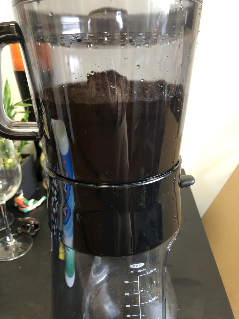 In hindsight, I would have purchased a more compact cold brew contraption, since this one takes up a lot of space in a small kitchen. But I’m happy with it. It makes a good amount of concentrate, which you can store in your fridge for a few days.