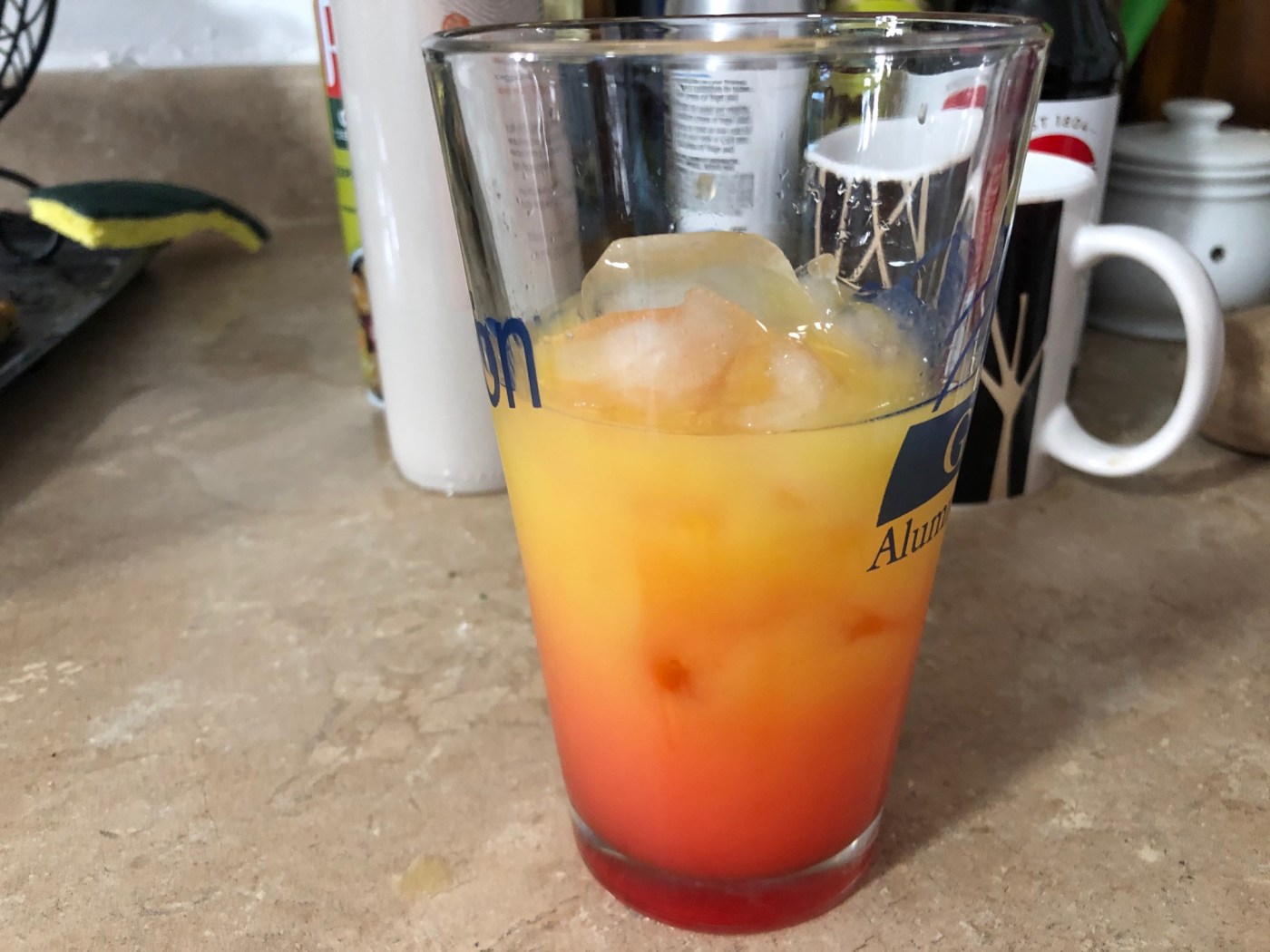 I happened to have orange juice in the house around the time of the Casamigos purchase, so I decided to make a tequila sunrise. I may or may not have had a tequila sunrise before. I most certainly had not made my own before, because I had no idea what I was doing. I found a recipe online, threw the ingredients in a pint glass, and drank it down like it was juice. I used less tequila than called for because I’m a lightweight now. Next time, I’ll throw caution to the wind and try the full amount.