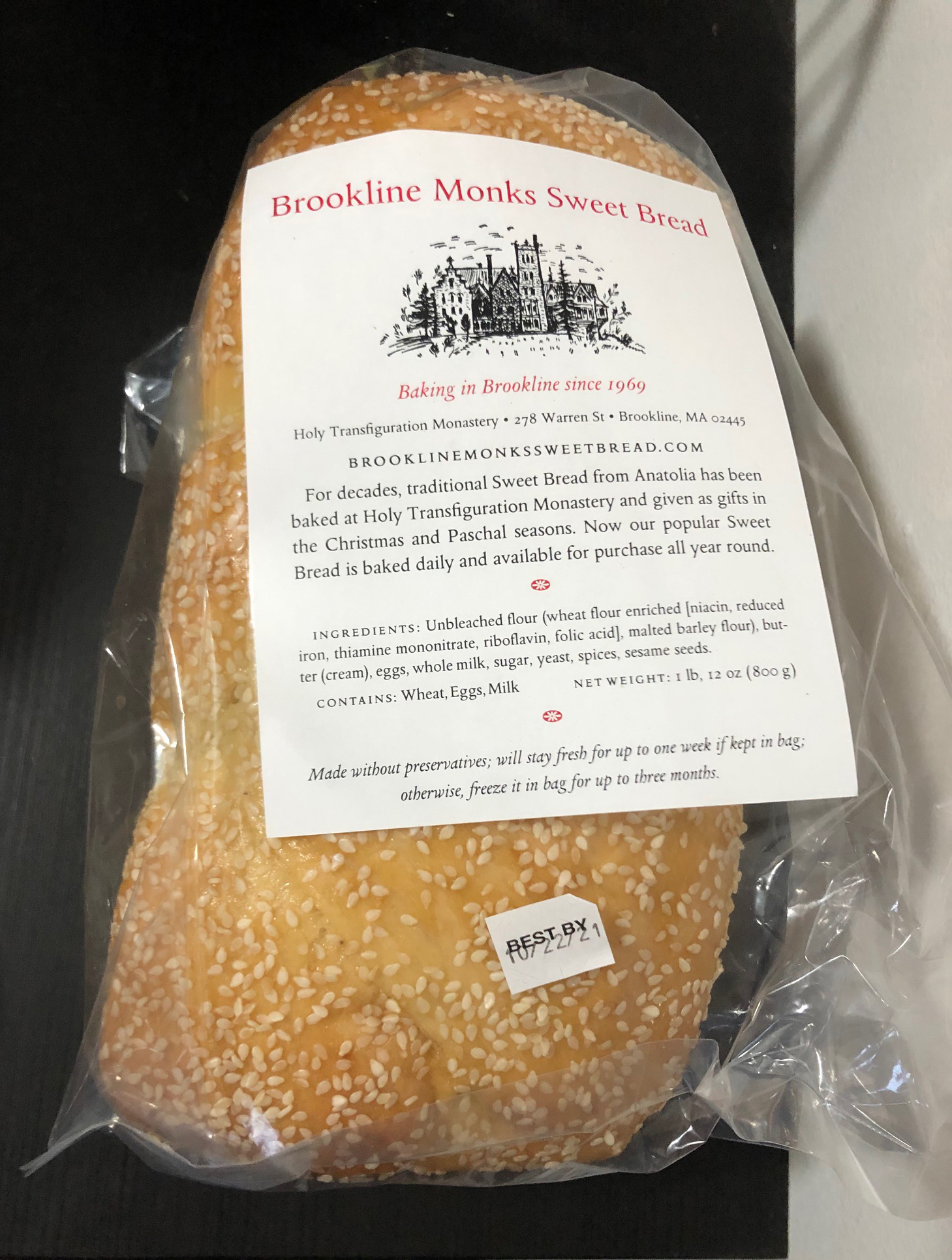 I don’t remember when I first heard about the sweet bread that is baked by monks at a local monastery. It was years ago. I saw the Brookline Monks Sweet Bread for sale at my local bookstore a few times before I took the leap and bought a loaf. It was a leap for me because one loaf costs $15.