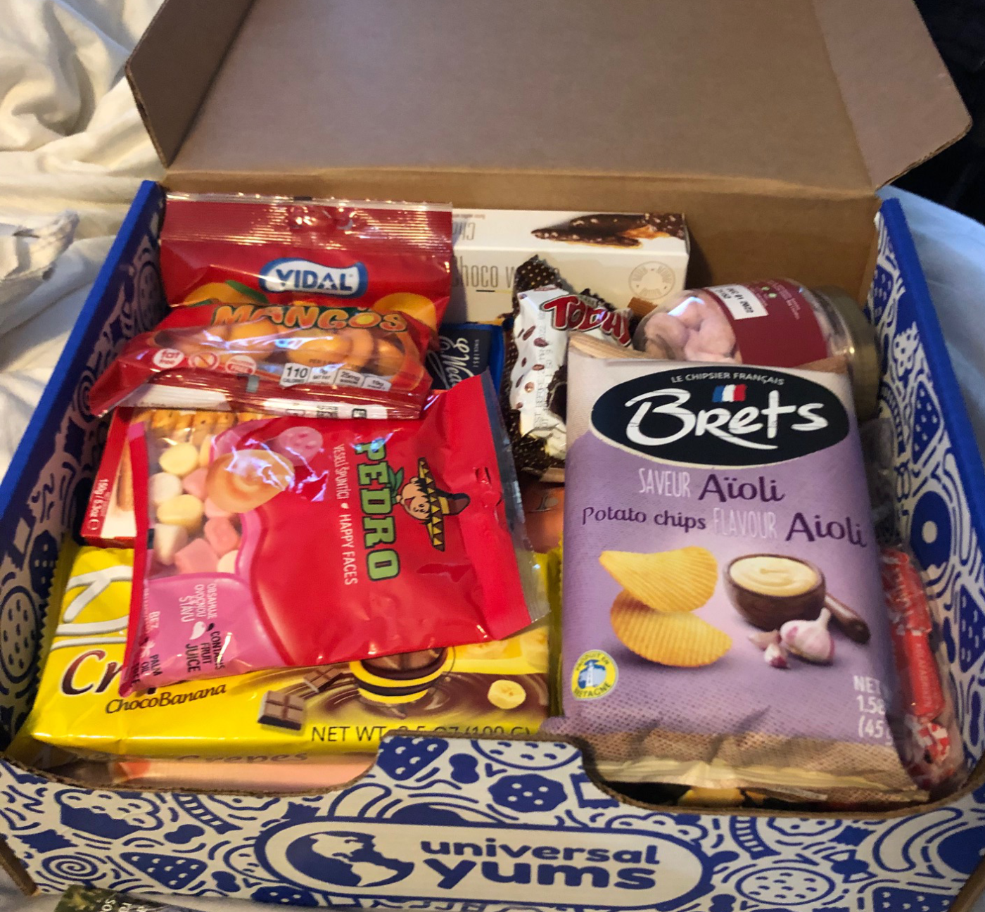 I heard about Universal Yums a few months ago and ordered a box for some friends for Christmas. The company delivers snacks from all around the world to your door. I ended up on the company’s email list because of my purchase.