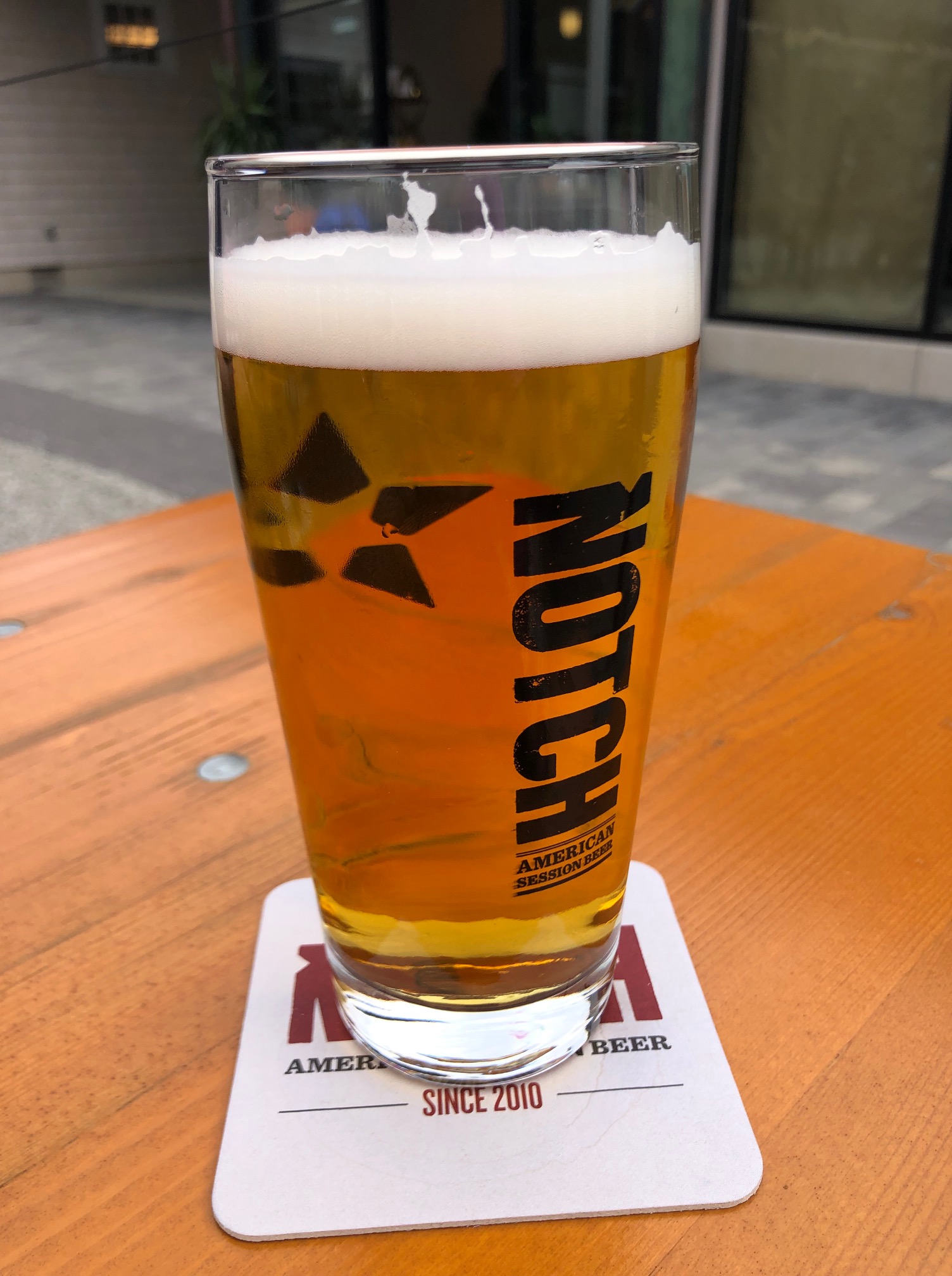 Notch Brewing from Salem, MA, has set up shop in the Charles River Speedway in Brighton. It’s an interesting spot with a group of historic buildings and a courtyard. Notch is set up in one building and has tables set up in the courtyard. There are a few eateries there…a hummus shop and ice cream shop. The Speedway is a fairly new venue and has been doing some programming, such as movie nights and Dungeons & Dragons nights.