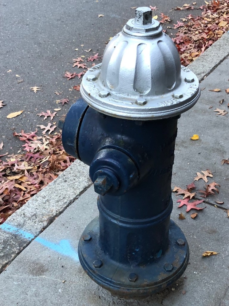 I chose the color blue, thinking that it would be a difficult color to find as I walked up and down my street. Was I ever wrong: I passed a blue car. I passed a person wearing a blue T-shirt. I passed a blue fire hydrant. I passed a blue children’s pail in a yard. I passed blue spray-painted lines over water mains on the street. I passed blue recycling bins. I passed a worn blue and yellow Ukrainian flag hanging from a porch.