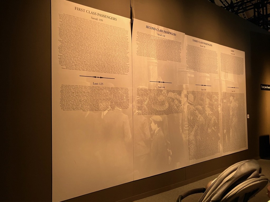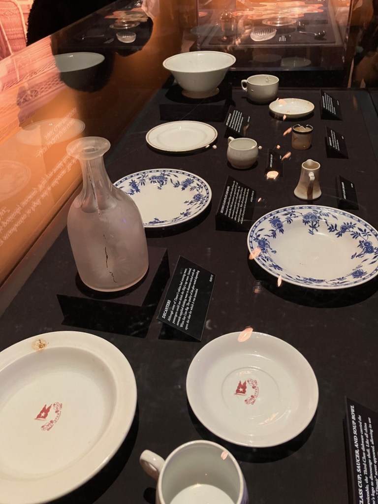 The exhibit was really interesting, and I was amazed to see so many intact artifacts. On display were pieces of the ship, pieces of fixtures, bottles and plates, items that belonged to passengers. There were also replicas of the grand staircase and passengers’ rooms.