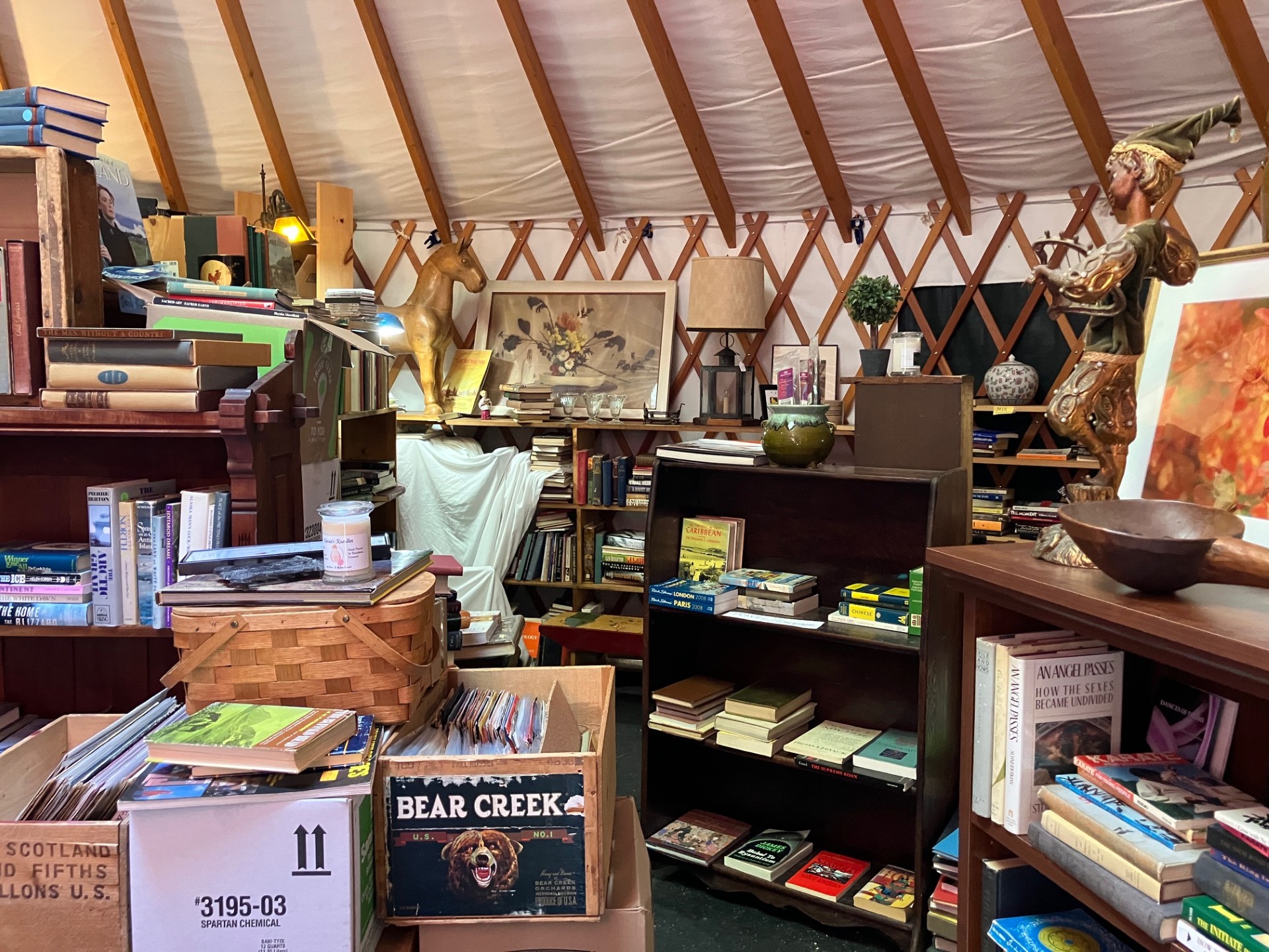 We had some nice meals in town and did some shopping. A used book and music store had a “yurt” outpost that required a lot of digging.